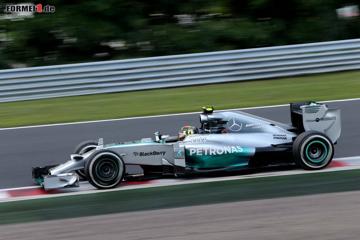 (Motorsport-Total.com) - Für Nico Rosberg setzte sich die perfekte Serie auch in Ungarn fort. Während der Mercedes seines Teamkollegen Lewis Hamilton zu Beginn des Qualifyings abbrannte, fuhr der Deutsche erneut makellos. Als es zu Beginn von Q3 zu regnen begann, rutschte Rosberg zwar in Kurve eins von der Strecke, konnte aber im Gegensatz zu Kevin Magnussen (McLaren) weiterfahren. Nach der Unterbrechung durch den Unfall entwickelte sich eine spannende Zeitenjagd gegen Weltmeister Sebastian Vettel (Red Bull).