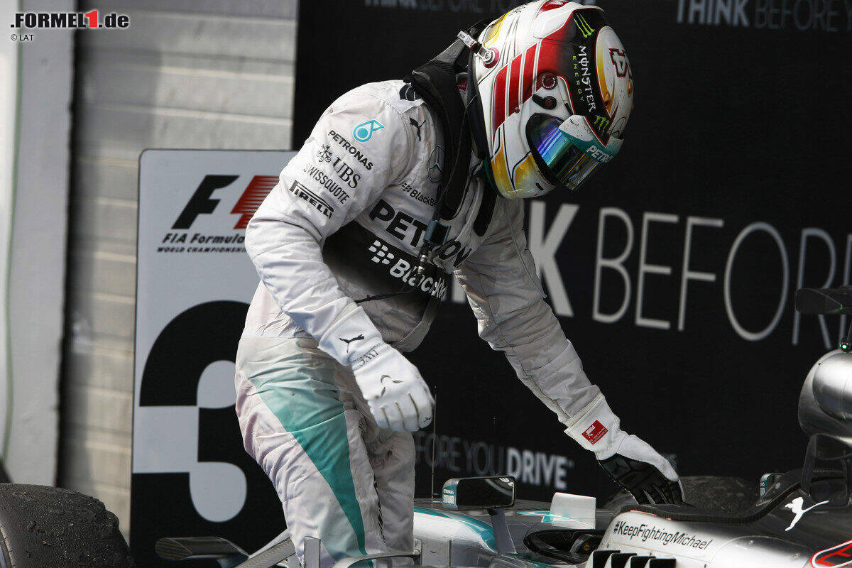Fast noch wichtiger als Platz drei: Hamilton kam sogar vor Nico Rosberg ins Ziel und machte dadurch in der WM wieder einige Zähler gut. Dabei hatte er vor der ersten Safety-Car-Phase bereits über 30 Sekunden Rückstand auf seinen Teamkollegen gehabt und es sah danach aus, als ob der 29-Jährige nichts mit dem Ausgang des Rennens zu tun haben würde.
