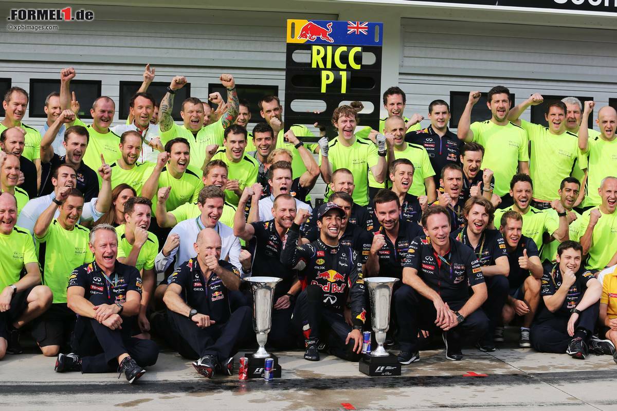 Und so bekam der Australier am Ende die Chance, mit zwei brillanten Überholmanövern seinen zweiten Formel-1-Sieg zu feiern: "Wir mussten überholen, um zu gewinnen. Wir hatten frischere Reifen, aber ich wusste, dass es ein aufregendes Finish werden würde. Es gab nur diese eine Möglichkeit zu gewinnen." Erst quetschte sich Ricciardo sehenswert in Kurve 2 an Hamilton vorbei, dann nahm er die Verfolgung des führenden Alonso auf.