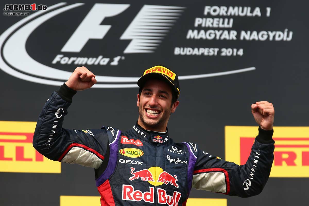 (Motorsport-Total.com) - Strahlender kann ein Gewinner kaum sein als Daniel Ricciardo. Der Australier überstand einen wahren Chaos-Grand-Prix in Budapest unbeschadet und fuhr als Erster über die Ziellinie. Dabei lief beim 25-Jährigen selbst nicht alles nach Maß, wie er im Anschluss an das Rennen erzählt. Zwischenzeitlich bekam er nämlich Motorenprobleme und musste diese aus dem Cockpit lösen.