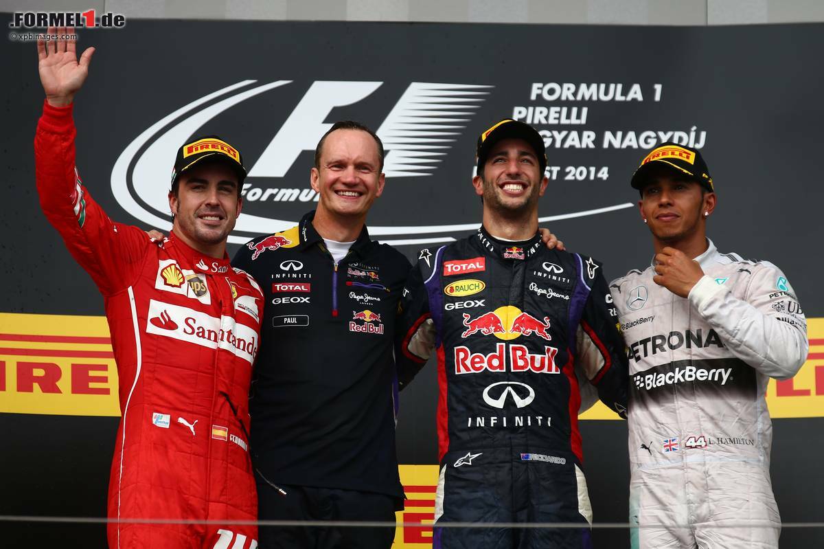 (Motorsport-Total.com) - Zum zweiten Mal in dieser Saison steht kein Silberpfeil auf der obersten Stufe des Podestes, zum zweiten Mal war Daniel Ricciardo der Nutznießer. Der Red-Bull-Pilot gewann in Budapest seinen zweiten Formel-1-Grand-Prix und strahlte natürlich über das ganze Gesicht. "Er fühlt sich so gut an wie der erste", lacht der Australier über seinen zweiten Coup.