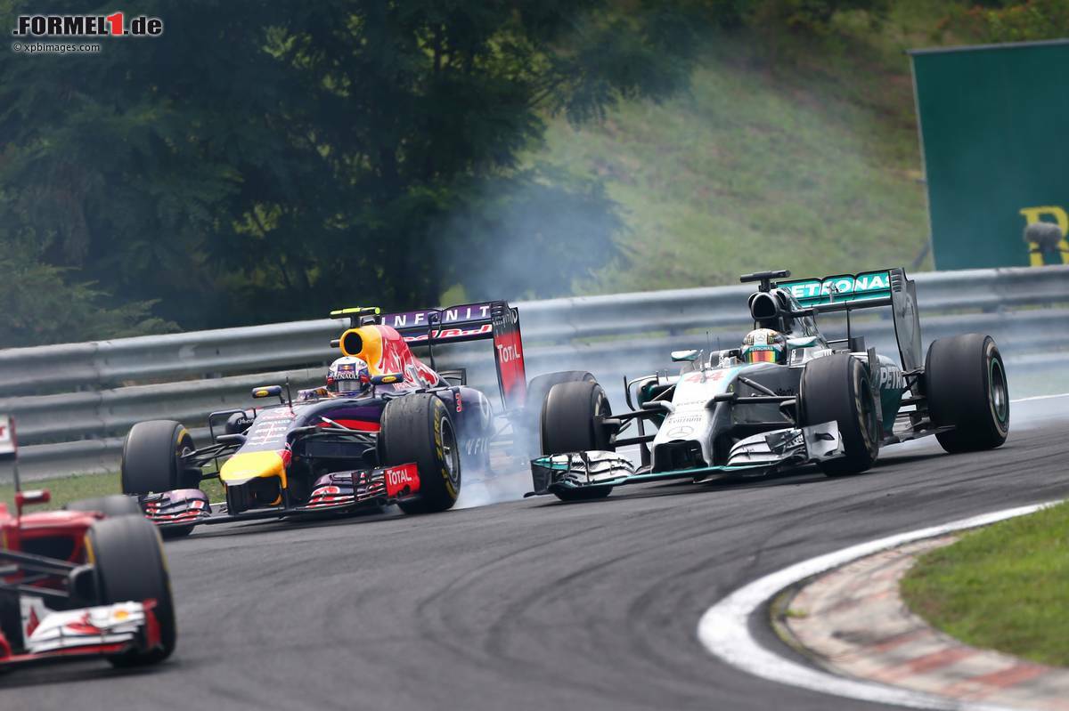 (Motorsport-Total.com) - Das war nochmal ein echter Thriller vor der vierwöchigen Sommerpause der Formel 1! Vor allem dank eines Regenschauers vor dem Start bot der Grand Prix von Ungarn am Hungaroring jede Menge Dramatik - und mit Daniel Ricciardo (Red Bull) am Ende einen genauso überraschenden wie verdienten Sieger. Der Australier feierte seinen zweiten Saisonsieg nach Kanada und setzte sich in einer packenden Schlussphase vor Fernando Alonso (Ferrari) sowie den beiden Mercedes-Piloten Lewis Hamilton und Nico Rosberg durch.