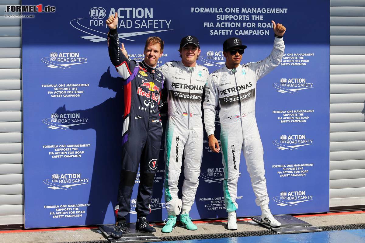 (Motorsport-Total.com) - Deklassiert. Anders kann man es nicht nennen, was die beiden Mercedes mit der Konkurrenz veranstaltet haben. Mehr als zwei Sekunden brummten Nico Rosberg und Lewis Hamilton den schnellsten Verfolgern um Sebastian Vettel auf. Für den WM-Führenden war es dabei bereits die vierte Pole in Folge, Hamilton darf sich trotz der erneuten Niederlage immerhin damit trösten, dass er zum ersten Mal seit Kanada wieder in der ersten Startreihe steht.