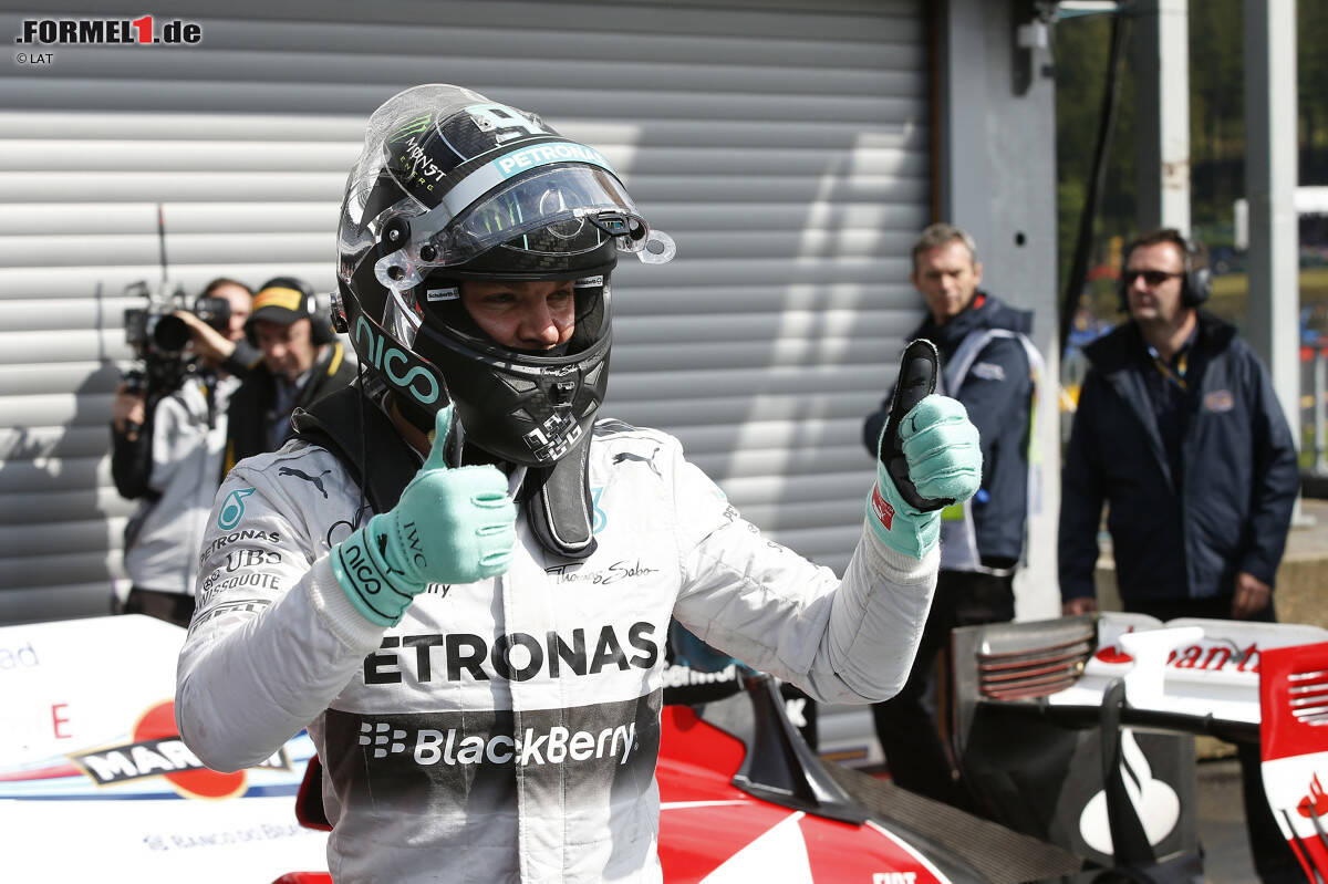Die richtige, und ganz offensichtliche auch bessere Abstimmung, hatte aber Mercedes selbst. Selbst auf die unvorhersehbare Wetterlage in den Ardennen waren die Silberpfeile an diesem Samstag vorbereitet.