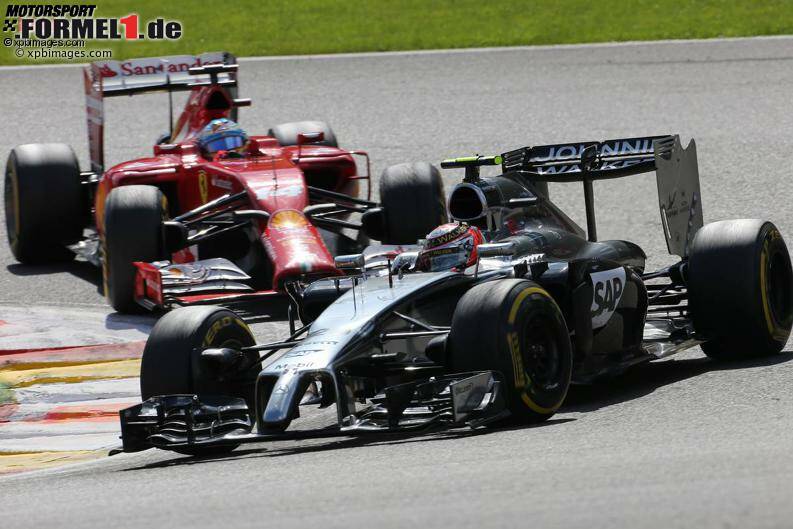 (Motorsport-Total.com) - Fernando hat seinen guten vierten Startplatz für das Formel-1-Rennen in Spa-Francorchamps nicht in ein entsprechendes Ergebnis umsetzen können. Der Spanier erreichte am Sonntag in Belgien das Ziel auf Rang acht, wurde aber wegen einer Strafe für Kevin Magnussen (McLaren) als Siebter gewertet. Alonso kämpfte im Rennen gegen viele Gegner: Button, Bottas, Batterie sowie Magnussen und Motor - um nur einige zu nennen.