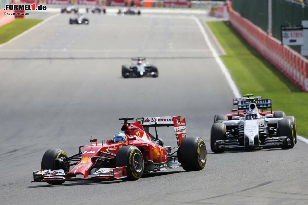 (Motorsport-Total.com) - Fernando hat seinen guten vierten Startplatz für das Formel-1-Rennen in Spa-Francorchamps nicht in ein entsprechendes Ergebnis umsetzen können. Der Spanier erreichte am Sonntag in Belgien das Ziel auf Rang acht, wurde aber wegen einer Strafe für Kevin Magnussen (McLaren) als Siebter gewertet. Alonso kämpfte im Rennen gegen viele Gegner: Button, Bottas, Batterie sowie Magnussen und Motor - um nur einige zu nennen.