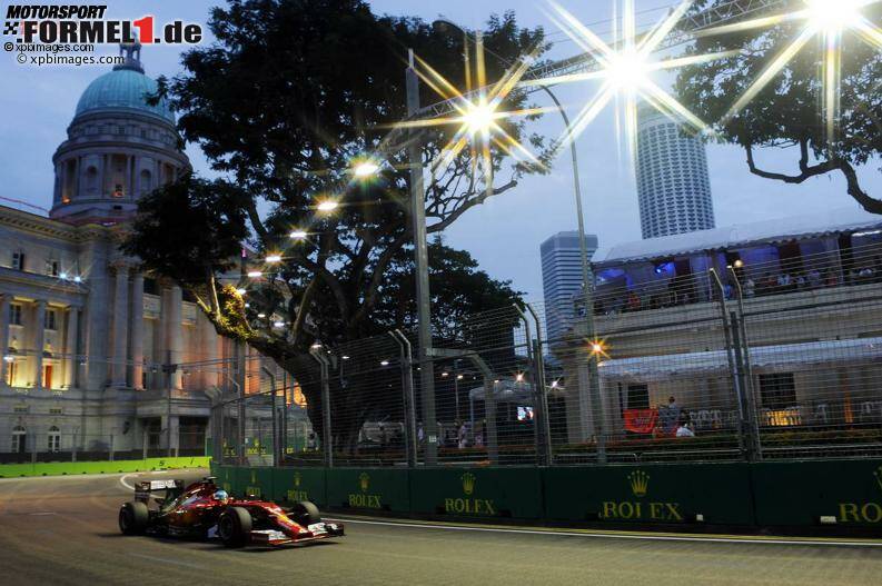 (Motorsport-Total.com) - Kaum hat Luca di Montezemolo seinen Rücktritt erklärt, läuft es für Ferrari wieder besser. Im Qualifying zum Singapur-Grand-Prix am Samstag überzeugte ein lange um die Pole-Position mitkämpfender Fernando Alonso als Fünfter (+0,173 Sekunden) ebenso wie ein formverbesserter Kimi Räikkönen (+0,489 Sekunden) auf Rang sieben. Für den Finnen wäre mehr drin gewesen, hätte ihn im dritten und letzten Qualifying-Abschnitt nicht ein mysteriöser Antriebsdefekt gestoppt.