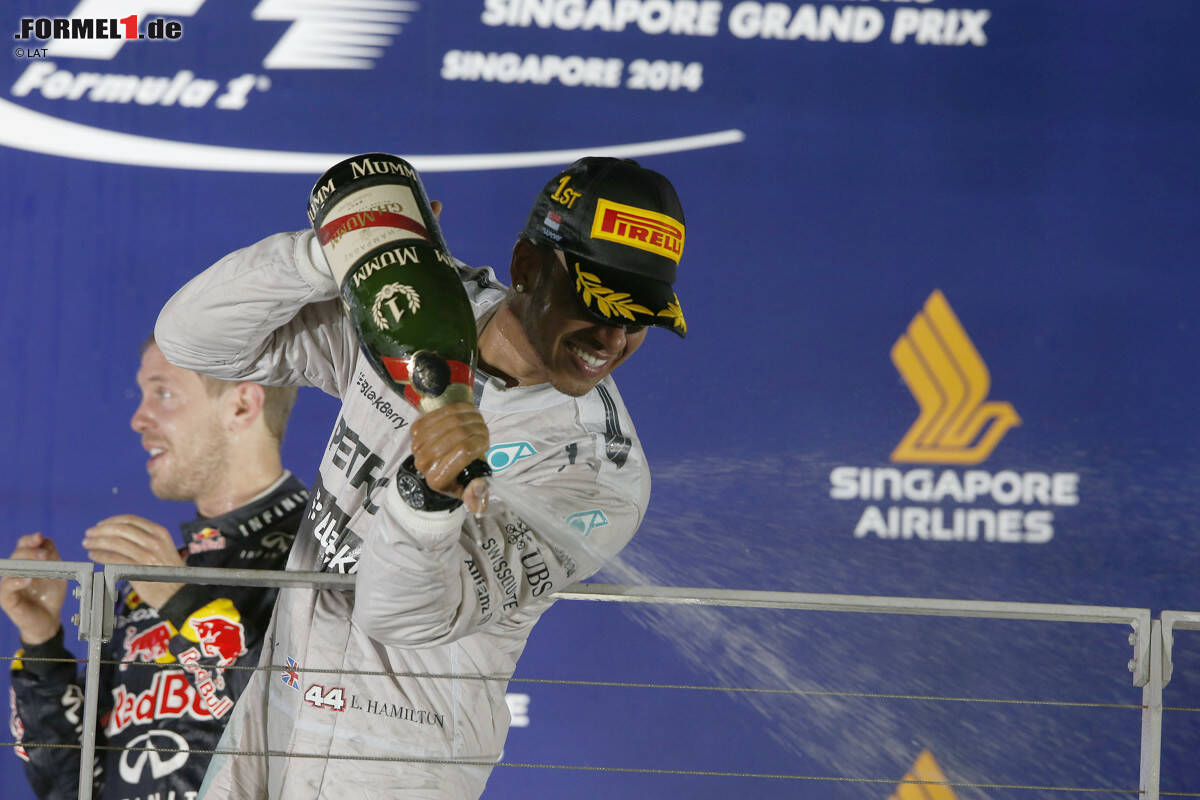 (Motorsport-Total.com) - Lewis Hamilton klang nicht nur nervös. Er war es auch. Daraus macht der Singapur-Sieger nach dem Rennen überhaupt keinen Hehl. Denn für den britischen Rennfahrer in Diensten von Mercedes ging es um sehr viel beim Formel-1-Nachtrennen. Weil sein Teamkollege Nico Rosberg schon früh mit technischem Defekt ausgeschieden war, konnte Hamilton die WM-Führung erobern - aber nur mit dem Sieg.