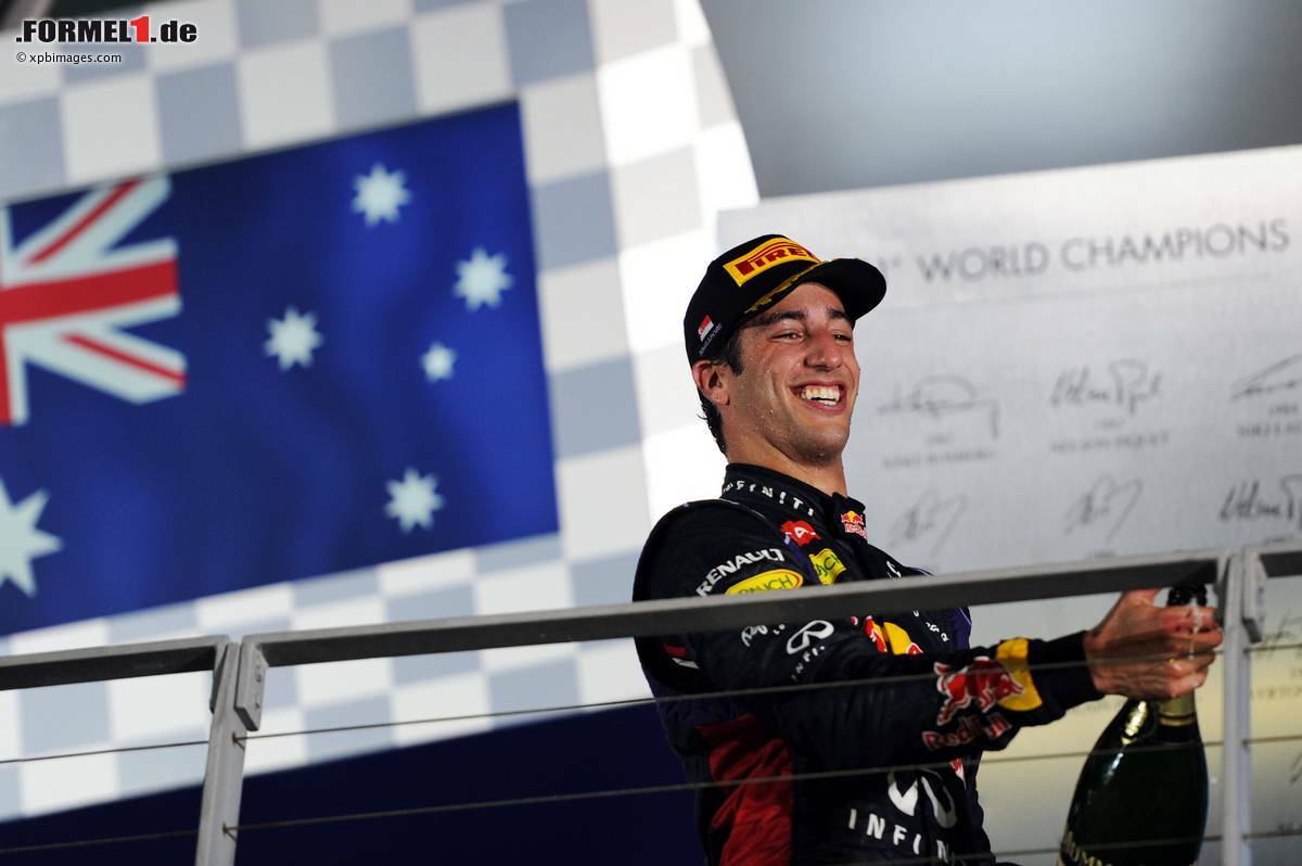 (Motorsport-Total.com) - Zwar verpasste es Daniel Ricciardo am Sonntag beim Singapur-Grand-Prix, seinem Teamkollegen Sebastian Vettel einmal mehr ein Schnippchen zu schlagen, mit dem dritten Platz war der Australier aber zufrieden - auch wenn er in der Schlussphase am Heck des Deutschen knabberte. Schließlich musste sich Ricciardo seine Ausgangsposition von Fernando Alonso zurückerkämpfen, nachdem der Spanier ihn kurz nach der grünen Ampel halb auf der Strecke und halb in der Auslaufzone überholt hatte.