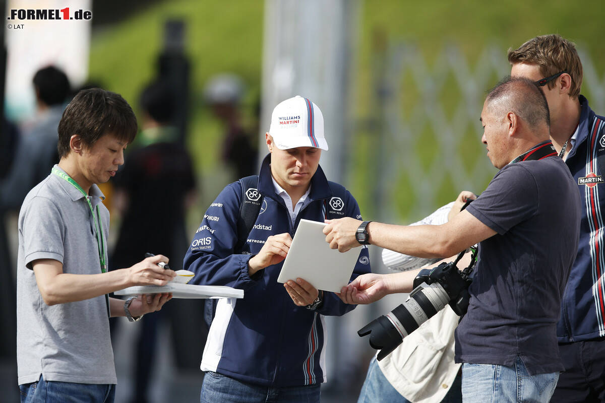 Nachdem das Vormittagstraining reibungslos verlaufen war, kam es am Nachmittag zu drei Unfällen. Das erste Opfer war ausgerechnet Kamui Kobayashi, der im ersten Training auf Kosten von Roberto Merhi zum Zuschauen verdammt war. Schon nach nur zwei Runden vor eigenem Publikum verlor er den Caterham eingangs der S-Kurven außer Kontrolle - konnte darüber aber bei der Rückkehr an die Box schon wieder Witze machen: "Das Tempo hat gepasst, die Kurve war zu eng!"