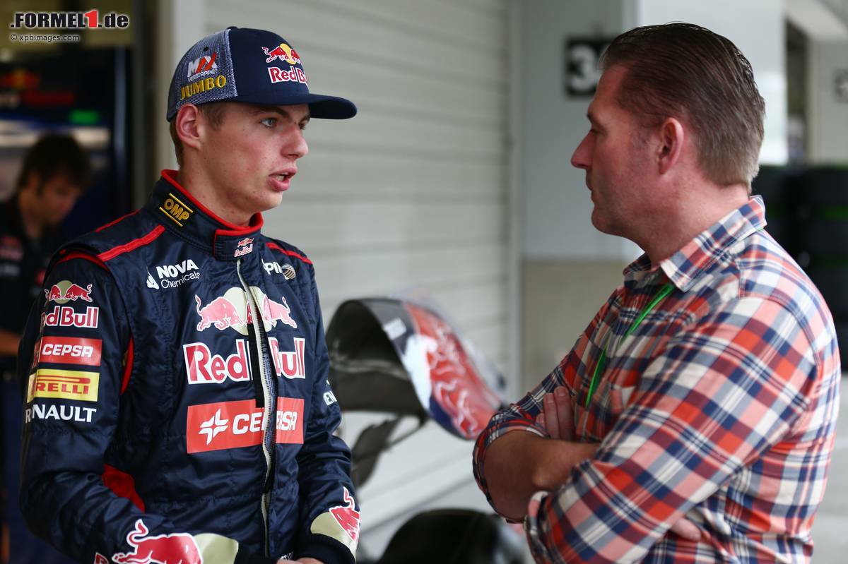 "Ich war sicherlich nervöser als er. Er macht einfach sein Ding, er zieht das durch. Das freut mich", sagt der Niederländer. Der erst 17-jährige Verstappen wird von Red Bull gefördert - und nicht zu knapp. Auch bei weiteren Stationen der Formel 1 wird der Youngster weitere Einsatzzeiten im Toro Rosso bekommen. "Er wird auch in Austin, Brasilien und Abu Dhabi im Auto sitzen. In Sotschi kann er nicht fahren, weil dort gleichzeitig das Formel-3-Wochenende in Imola ist", so Jos Verstappen bei 'Sky Sports F1'.