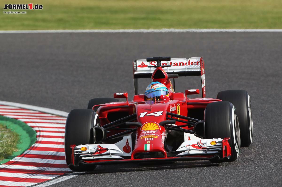 (Motorsport-Total.com) - Am Tag, als Sebastian Vettels Abschied von Red Bull bekannt wurde und alle Welt auf die Bestätigung seines Wechsels zu Ferrari wartet, fuhr Fernando Alonso im Qualifying zum Grand Prix von Japan in Suzuka den schnellsten Ferrari auf Startplatz fünf. Teamkollege Kimi Räikkönen startet als Zehnter, doch das interessierte angesichts der Neuigkeiten am Samstag die wenigsten.