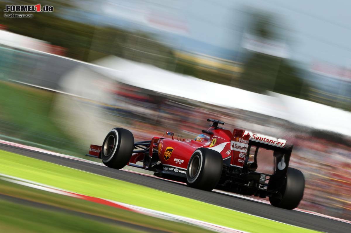 (Motorsport-Total.com) - Am Tag, als Sebastian Vettels Abschied von Red Bull bekannt wurde und alle Welt auf die Bestätigung seines Wechsels zu Ferrari wartet, fuhr Fernando Alonso im Qualifying zum Grand Prix von Japan in Suzuka den schnellsten Ferrari auf Startplatz fünf. Teamkollege Kimi Räikkönen startet als Zehnter, doch das interessierte angesichts der Neuigkeiten am Samstag die wenigsten.