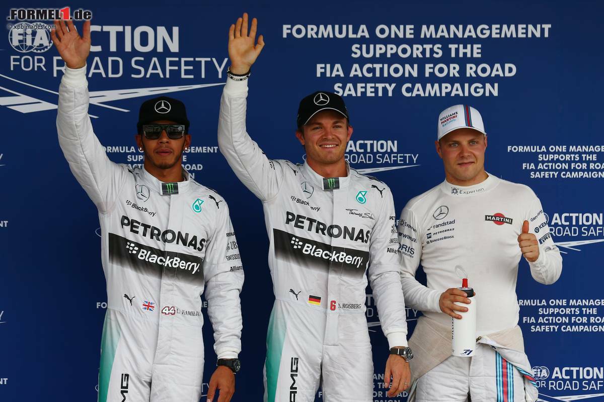 "Hochachtung, besser geht es nicht", lobt Mercedes-Aufsichtsratschef Niki Lauda gegenüber 'RTL' die Leistung des gesamten Mercedes-Teams nach der erneut komplett für sich beanspruchten ersten Startreihe. Der dreimalige Formel-1-Weltmeister merkt an, dass die Pole für Rosberg im Falle eines Regenrennens auf dem Papier noch wertvoller ist: "Derjenige, der als Erster in die erste Kurve einbiegt, hat kein Spray. Er kann die eigene Geschwindigkeit bestimmen und vornweg fahren. Die Frage ist, wie stark es morgen regnet."