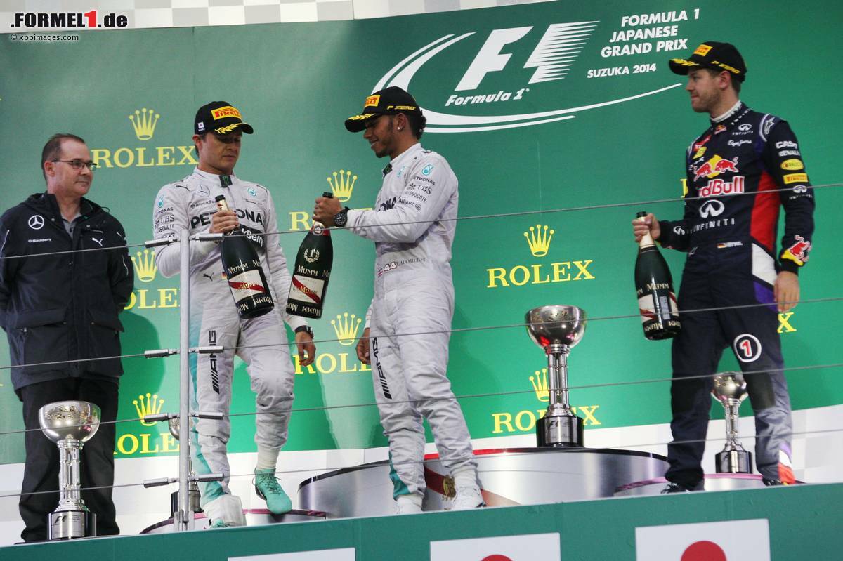 (Motorsport-Total.com) - Mercedes verbuchte beim Grand Prix von Japan in Suzuka den achten Doppelerfolg der Saison. Genau wie in Sepang, Sachir, Schanghai, Barcelona und Monza war es Lewis Hamilton, der gegenüber Nico Rosberg die Oberhand behielt.