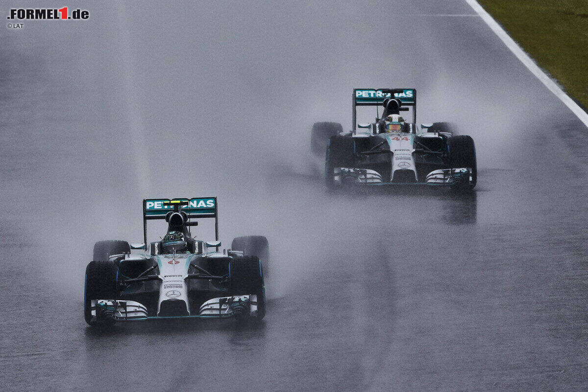 Der von Startplatz zwei neben seinem Teamkollegen ins Rennen gegangene Hamilton zog auf regennasser Piste in Runde 29 am Ende der Start/Ziel-Geraden vorbei und fuhr anschließend ungefährdet zu seinem achten Saisonsieg. Polesetter Rosberg kämpfte mit starkem Übersteuern und hatte dem WM-Spitzenreiter nichts entgegenzusetzen.