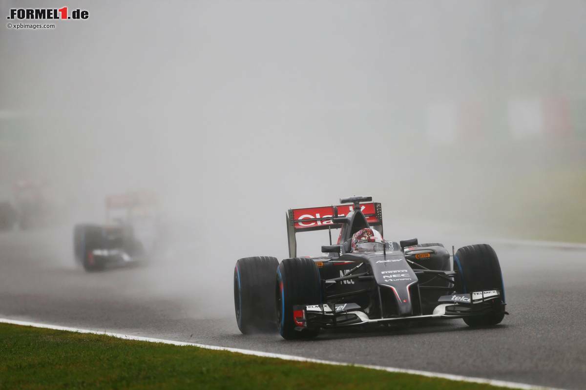 (Motorsport-Total.com) - Safety-Car-Einsätze, Rennabbrüche und wechselnde Bedingungen machten das 15. Rennen der Formel-1-Saison 2014 zur großen Herausforderung. Die Sauber-Piloten Adrian Sutil und Esteban Gutierrez konnten dabei größtenteils den Überblick behalten, bis es Sutil schließlich in der 42. Runde doch von der Strecke trägt. Gutierrez kann seinen 13. Platz noch halten.