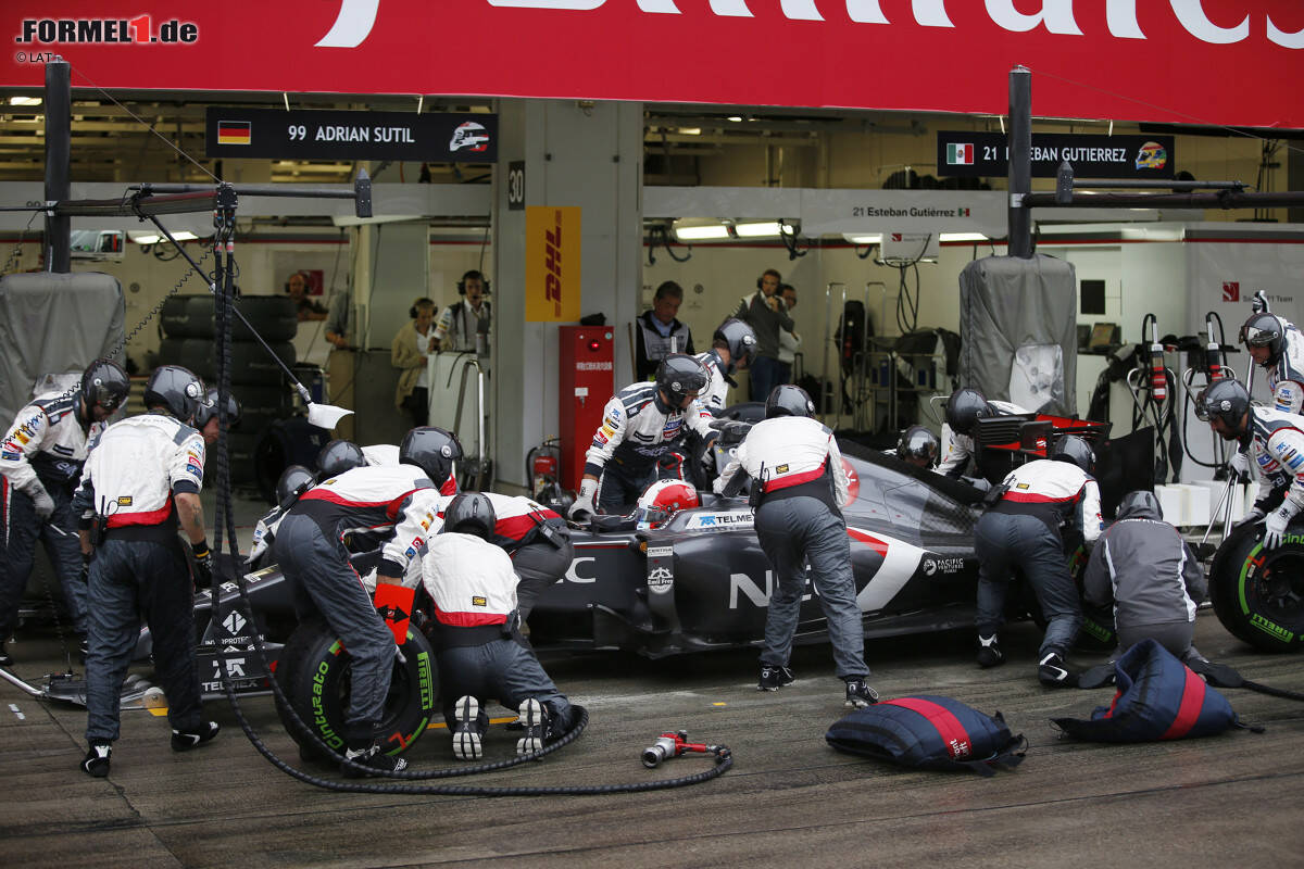 (Motorsport-Total.com) - Safety-Car-Einsätze, Rennabbrüche und wechselnde Bedingungen machten das 15. Rennen der Formel-1-Saison 2014 zur großen Herausforderung. Die Sauber-Piloten Adrian Sutil und Esteban Gutierrez konnten dabei größtenteils den Überblick behalten, bis es Sutil schließlich in der 42. Runde doch von der Strecke trägt. Gutierrez kann seinen 13. Platz noch halten.