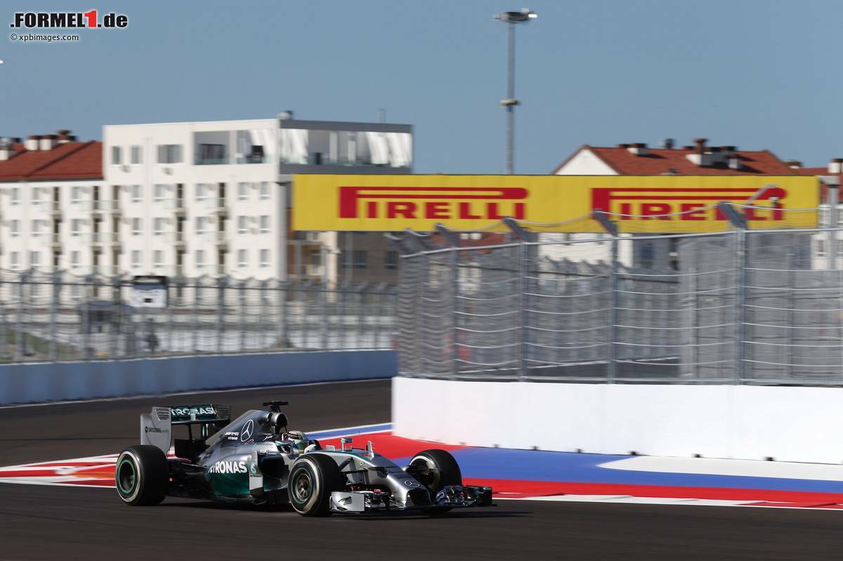 (Motorsport-Total.com) - Mercedes macht auch auf dem neuen Kurs in Sotschi einen dominanten Eindruck. Die Silberpfeile waren zum Auftakt in beiden Trainings an der Spitze. Zuerst hatte Nico Rosberg die Nase vor Lewis Hamilton, am Nachmittag war es dann der WM-Leader, der in 1:39.630 Minuten die klare Tagesbestzeit aufstellte. Der Brite war damit 0,864 Sekunden schneller als der Zweitplatzierte Kevin Magnussen im McLaren.