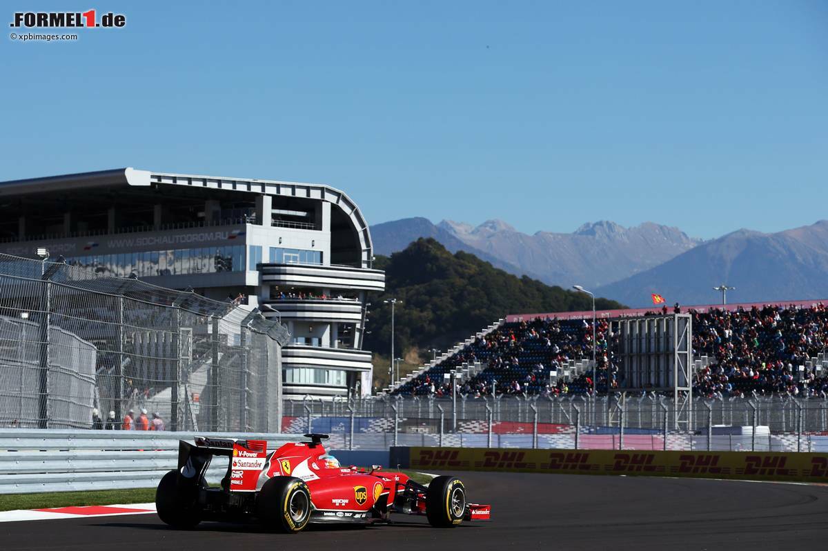 (Motorsport-Total.com) - Dass Fernando Alonso keine Höhenluft schnuppert, liegt nicht nur daran, dass der Russland-Grand-Prix auf Meereshöhe stattfindet. Sein Ferrari scheint den Spanier bei der Sotschi-Premiere nicht zu Höchstleistungen zu katapultieren, schließlich bedeutete Rang acht im Qualifying am Samstag einmal mehr Durchschnittskost. "Wir waren nicht so konkurrenzfähig wie auf anderen Strecken", beklagt Alonso bei 'Sky Sports F1'. "Wir hatten damit Probleme, in der gezeiteten Runde auf Tempo zu kommen."