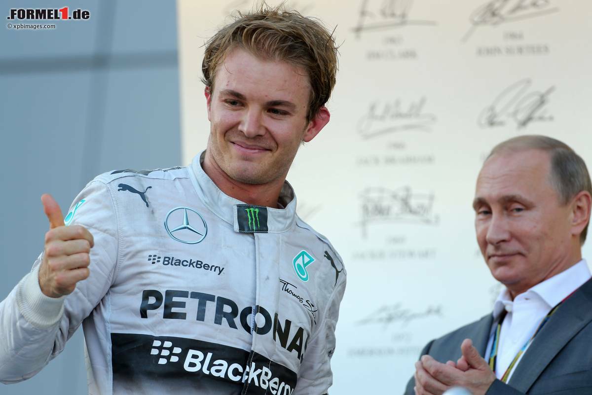 (Motorsport-Total.com) - Wladimir Putin setzte alles daran, eine goldene Rennpremiere in Sotschi zu inszenieren. Auf dem Podium musste der Präsident Russlands mit viel Silber vorliebnehmen. Rennsieger Lewis Hamilton und Teamkollege Nico Rosberg bejubelten nicht nur einen weiteren Doppelerfolg, sondern auch den vorzeitigen Gewinn der Konstrukteurs-WM durch Mercedes. Der Brite sprudelte vor Freude, schließlich baute er seine Führung im Fahrerchampionat aus: "Ich bin so glücklich, dass ich hier oben stehen darf", so Hamilton.