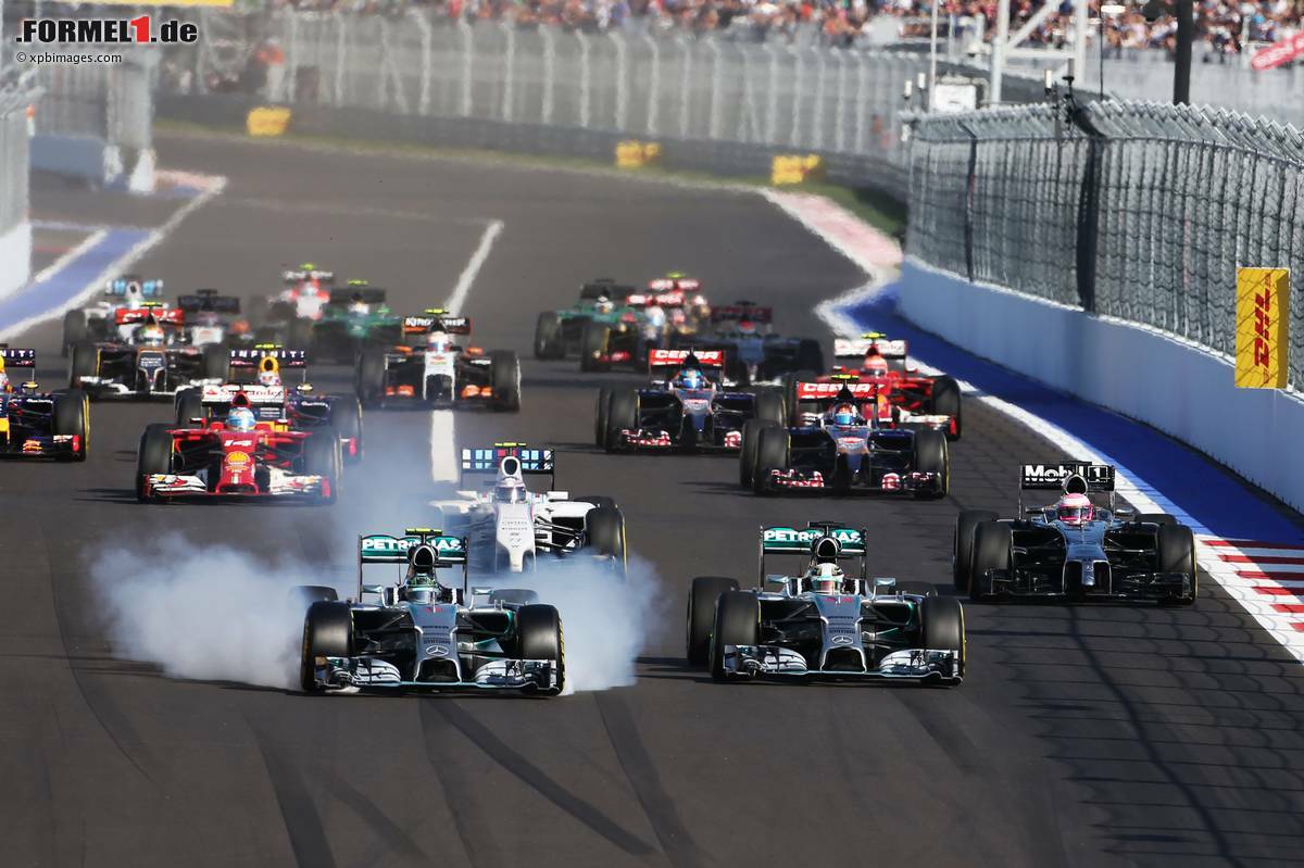 (Motorsport-Total.com) - Mit dem zehnten Doppelerfolg des Jahres hat sich Mercedes vorzeitig zum Weltmeister der Formel-1-Konstrukteure gekrönt. Im Grand Prix von Russland in Sotschi feierte WM-Leader Lewis Hamilton einen ungefährdeten Sieg vor seinem Mercedes-Teamkollegen Nico Rosberg und Valtteri Bottas (Williams). In einem mäßig aufregenden Rennen in der Olympiastadt war gegen die Silberpfeile kein Kraut gewachsen.