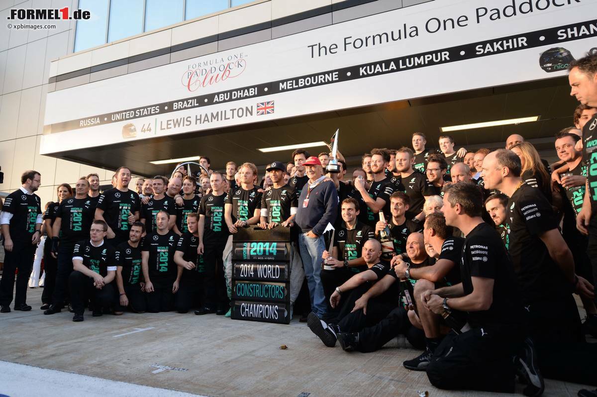 (Motorsport-Total.com) - Unglaublich, aber wahr: Es hat Jahrzehnte voller Motorsport-Tradition gedauert, ehe Mercedes am Sonntag in Sotschi seinen ersten WM-Titel der Formel-1-Konstrukteure feierte. Umso größer war die Freude bei den Verantwortlichen des Teams. "Es ist einfach nicht zu fassen. Ich bin wirklich überglücklich. Ich weiß gar nicht, ob ich mich jetzt viermaliger Weltmeister nennen darf?", jubelt Niki Lauda, der sich als Aktiver drei Fahrerkronen aufsetzte, am Mikrofon von 'Sky Sports F1'.