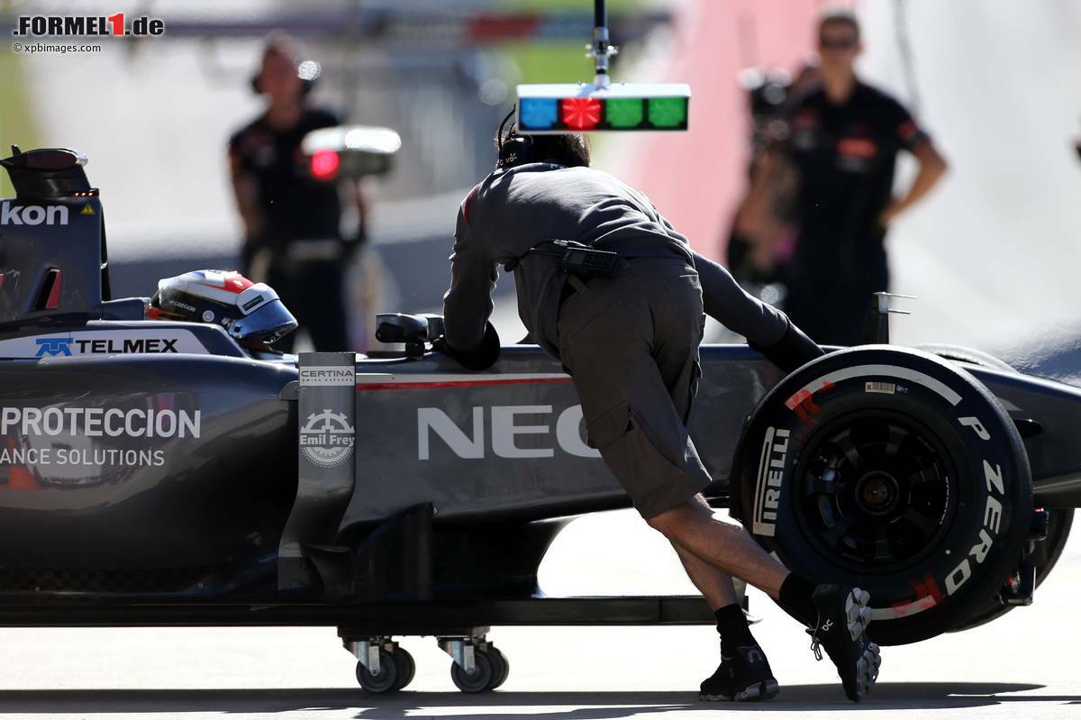 Recht ordentlich die Longruns von Jean-Eric Vergne (13./Toro Rosso/+2,025) und Sergio Perez (14./Force India/+2,038). Adrian Sutil (16./+2,247) muss sich hingegen in Abwesenheit von Marussia und Caterham darauf einstellen, dass Sauber gegen Lotus diesmal der Kampf gegen die rote Laterne ist. Mit den Positionen 16 und 17 (im zweiten Training war nur Vettel langsamer) war Sauber am ersten Tag die langsamste Kraft im dezimierten Formel-1-Starterfeld.