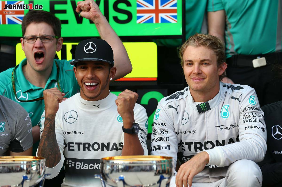 In der Weltmeisterschaft ist damit möglicherweise eine Vorentscheidung gefallen, denn obwohl in Abu Dhabi doppelte Punkte vergeben werden, kann Rosberg den Titel nicht mehr aus eigener Kraft gewinnen. Nach 17 von 19 Grands Prix 2014 hat er 24 Punkte Rückstand auf Hamilton - sollte er in Sao Paulo und Abu Dhabi jeweils vor seinem Teamkollegen gewinnen, würde er nur 21 davon gutmachen. Kein Wunder also, dass er sich nach der Zieldurchfahrt bei seiner Crew entschuldigte: "Sorry, Jungs!"