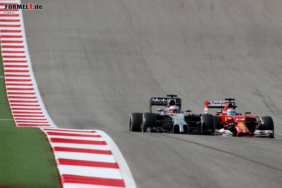 In der 22. und 23. Runde gehört die Showbühne kurzzeitig Jenson Button (McLaren) und Alonso, die um Platz sieben fighten. Die beiden Ex-Weltmeister lassen sich über mehrere Kurven gegenseitig Raum, schenken sich aber nichts. Letztendlich behält Alonso die