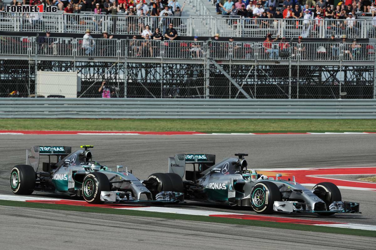 (Motorsport-Total.com) - Der fünfte Streich in Folge bringt Lewis Hamilton immer näher in Richtung WM-Titel. Auch auf dem Circuit of the Americas konnte der Brite Teamkollege Nico Rosberg in Schach halten und sich den Sieg sichern. Trotz Pole-Position und gewonnenem Start des Deutschen verlor Hamilton den Sieg nie aus den Augen und blieb auf den Fersen von Rosberg. Im zweiten Stint setzte er das entscheidende harte Manöver im Kampf um Rang eins und trug die Position bis ins Ziel.