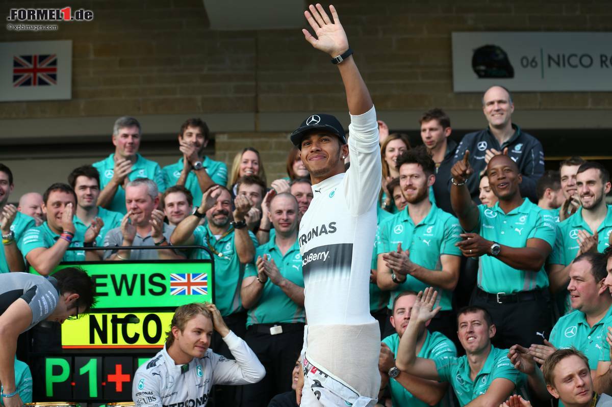 (Motorsport-Total.com) - Der fünfte Streich in Folge bringt Lewis Hamilton immer näher in Richtung WM-Titel. Auch auf dem Circuit of the Americas konnte der Brite Teamkollege Nico Rosberg in Schach halten und sich den Sieg sichern. Trotz Pole-Position und gewonnenem Start des Deutschen verlor Hamilton den Sieg nie aus den Augen und blieb auf den Fersen von Rosberg. Im zweiten Stint setzte er das entscheidende harte Manöver im Kampf um Rang eins und trug die Position bis ins Ziel.
