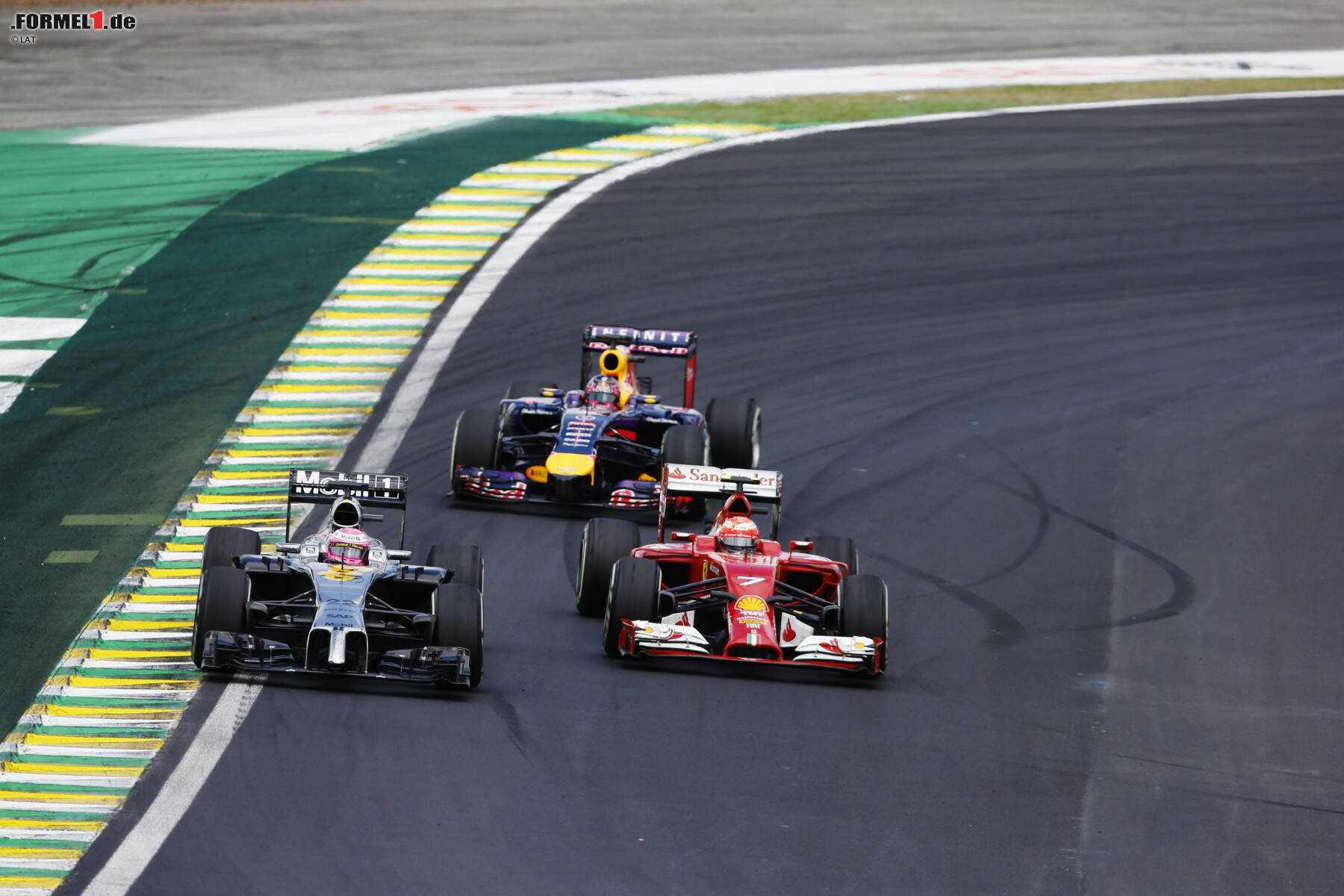 Den lautesten Jubel erntete aber keiner der beiden Titelanwärter, sondern Lokalmatador Felipe Massa für seinen dritten Platz. Massa kassierte zwar eine Fünf-Sekunden-Strafe für Geschwindigkeitsüberschreitung in der Boxengasse, sicherte seinen dritten Platz jedoch ab, als Teamkollege Valtteri Bottas beim Reifenwechsel viel Zeit verlor, weil die Williams-Mechaniker seinen Sicherheitsgurt festzurren mussten. Der Finne kam letztendlich nur als Zehnter ins Ziel.