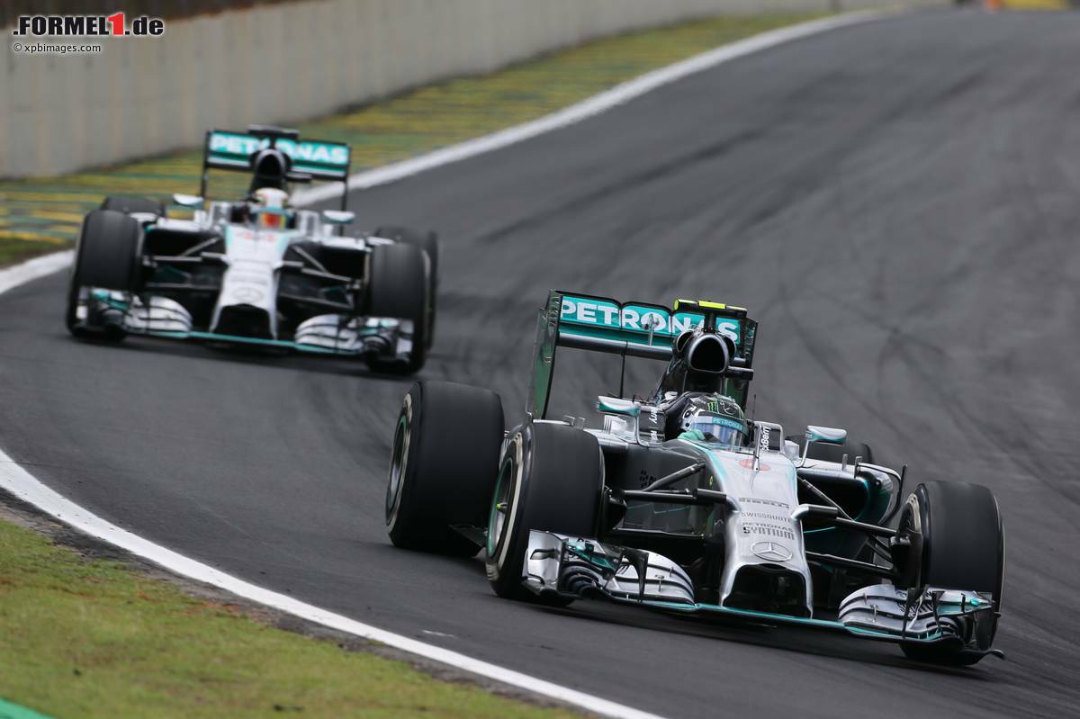 (Motorsport-Total.com) - Fast vier lange Monate musste Nico Rosberg warten, bis er seinen fünften Saisonsieg einfahren konnte, doch in Brasilien sollte der Wiesbadener endlich die Serie seines Teamkollegen zum Reißen bringen. Rosberg fuhr von der Pole weg ein taktisch cleveres Rennen und ließ Lewis Hamilton hinter ihm am ausgestreckten Arm verhungern. Nie war der Brite wirklich in Angriffsposition, um sich doch noch den sechsten Sieg in Folge zu sichern.