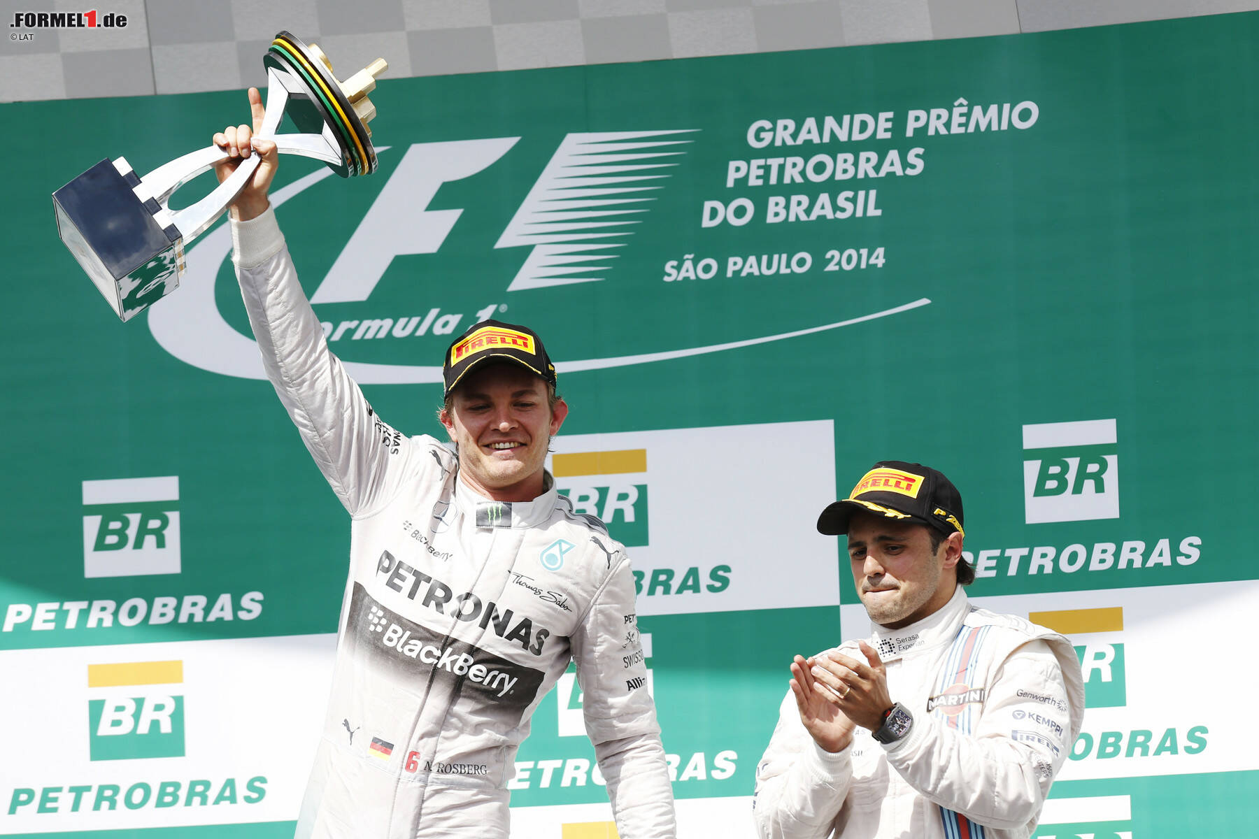 (Motorsport-Total.com) - Fast vier lange Monate musste Nico Rosberg warten, bis er seinen fünften Saisonsieg einfahren konnte, doch in Brasilien sollte der Wiesbadener endlich die Serie seines Teamkollegen zum Reißen bringen. Rosberg fuhr von der Pole weg ein taktisch cleveres Rennen und ließ Lewis Hamilton hinter ihm am ausgestreckten Arm verhungern. Nie war der Brite wirklich in Angriffsposition, um sich doch noch den sechsten Sieg in Folge zu sichern.