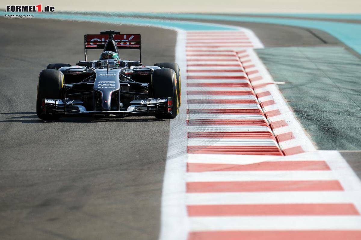 (Motorsport-Total.com) - Im ersten Freien Training zum Großen Preis von Abu Dhabi erlebten gleich drei Piloten ihre Premiere an einem Rennwochenende der Formel 1, so auch Adderly Fong. Der in Kanada geborene Chinese fuhr bei Sauber das Auto von Adrian Sutil, der am Mittag (Ortszeit) zuschauen musste. Fong, der bisher mit mäßigem Erfolg in der GP3 gefahren war, belegte im Training den 19. Platz (+4,793 Sekunden) und hatte rund 1,8 Sekunden Rückstand auf Esteban Gutierrez im zweiten Sauber.