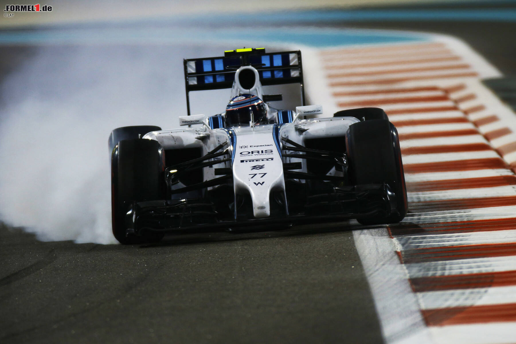 (Motorsport-Total.com) - Wenn am Sonntag das Finale der Formel-1-Saison 2014 gestartete wird, wird es Williams-Pilot Valtteri Bottas sein, der die beste Chance hat, in das Geschehen rund um die Titelentscheidung der Mercedes-Rivalen Lewis Hamilton und Nico Rosberg einzugreifen. Der Finne setzt sich im Qualifying zum Grand Prix von Abu Dhabi gegen seinen Teamkollegen Felipe Massa und den Rest des Feldes durch und erreicht Startplatz drei. Die Chance, sich zwischen die Silberpfeile zu schieben, hat er zumindest am Samstag allerdings vergeben.