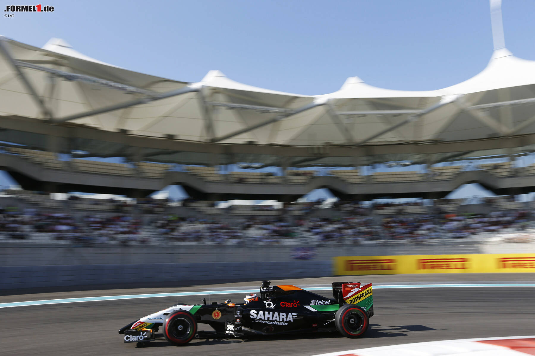 Nico Hülkenberg verlor das Force-India-Stallduell gegen Sergio Perez beim Saisonfinale um 0,145 Sekunden, setzte sich aber insgesamt mit 12:7 durch. Morgen bedeutet das den 14. Startplatz. Adrian Sutil (bei Sauber 10:9-Sieger gegen Esteban Gutierrez) sicherte sich Rang 15. Letzterer war in Q1 nur um 22 Tausendstelsekunden schneller als Romain Grosjean (Lotus), der morgen wegen seines Antriebswechsels nicht nur als Letzter losfahren, sondern auch eine Durchfahrtstrafe absitzen muss.