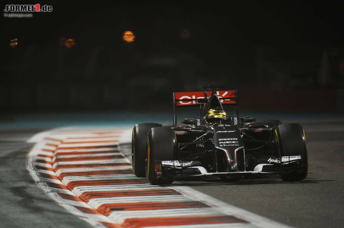 Nico Hülkenberg verlor das Force-India-Stallduell gegen Sergio Perez beim Saisonfinale um 0,145 Sekunden, setzte sich aber insgesamt mit 12:7 durch. Morgen bedeutet das den 14. Startplatz. Adrian Sutil (bei Sauber 10:9-Sieger gegen Esteban Gutierrez) sicherte sich Rang 15. Letzterer war in Q1 nur um 22 Tausendstelsekunden schneller als Romain Grosjean (Lotus), der morgen wegen seines Antriebswechsels nicht nur als Letzter losfahren, sondern auch eine Durchfahrtstrafe absitzen muss.
