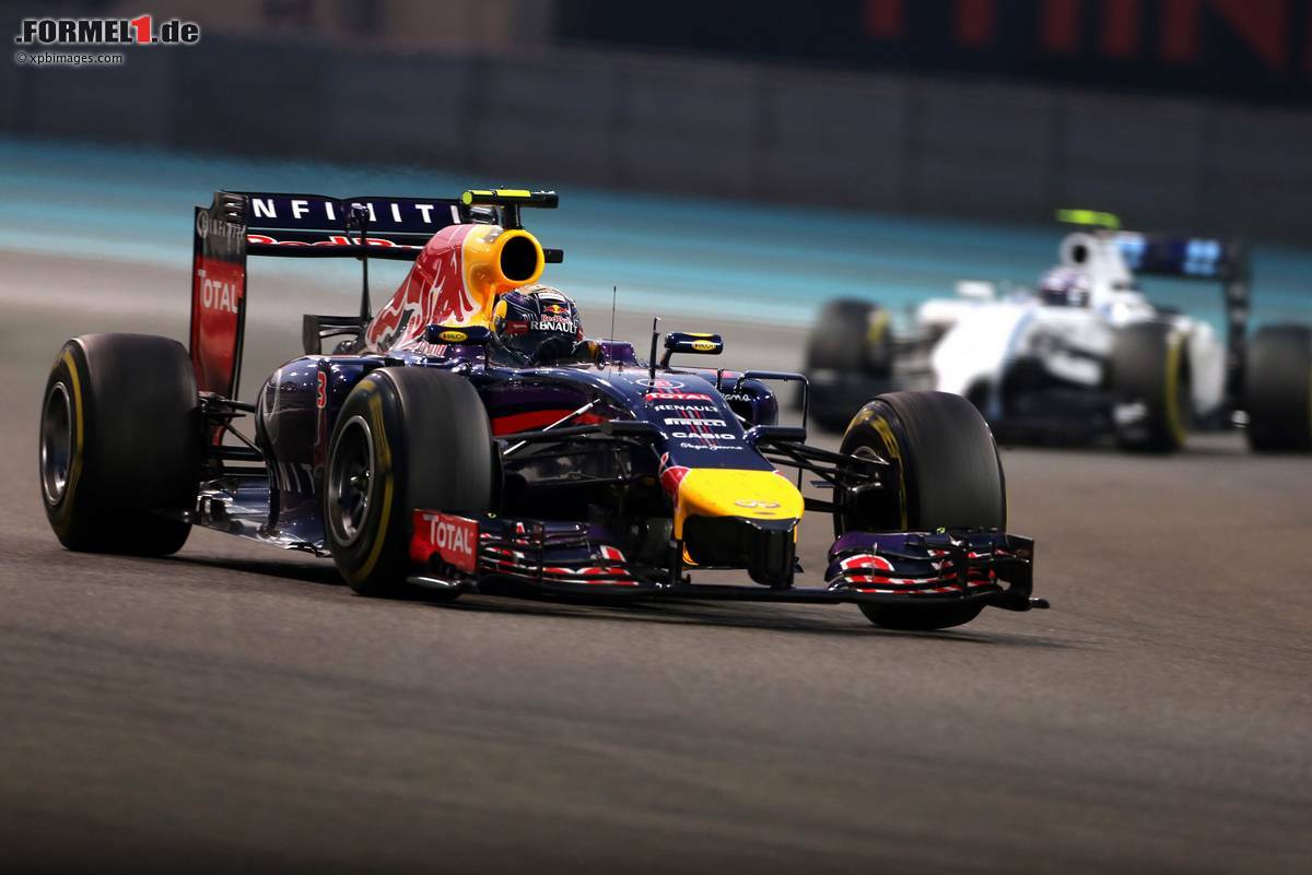 (Motorsport-Total.com) - Für Red Bull ging es in Abu Dhabi nicht mehr um viel. Den zweiten Platz unter den Teams hatten sie vor dem Finale der Formel-1-Saison 2014 schon genauso sicher, wie Daniel Ricciardo seinen dritten unter den Fahrern. Nachdem beide Piloten aber wegen eines illegalen Frontflügels vom Qualifying ausgeschlossen wurden und aus der Boxengasse starteten, sollte wenigstens ein erfolgreicher Jahresabschluss gelingen. Ricciardo gelang das mit seiner Fahrt auf Platz vier beeindruckend. Sebastian Vettel muss nach sechs Jahren als Achter in Abu Dhabi und fünfter in der Gesamtwertung abdanken.
