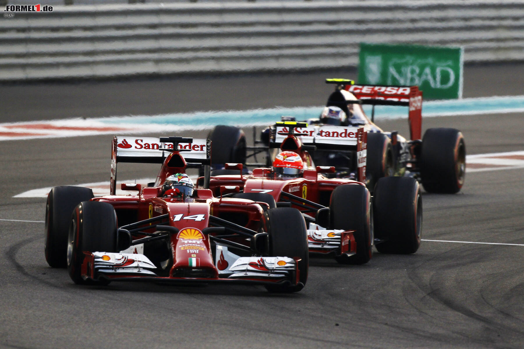Ausfälle setzte es beim Saisonfinale auch für Kamui Kobayashi (Caterham) und Pastor Maldonado (Lotus), dessen Renault-Motor lichterloh in Flammen aufging. Dass die Lotus-Mechaniker das mit hämischem Gelächter quittierten, blieb im ersten Moment rätselhaft. Grand-Prix-Debütant Will Stevens (Caterham) überstand zwar die wolle Distanz beim Flutlicht-Rennen, kam aber als 17. und Letzter mit fast zwei Runden Rückstand ins Ziel.