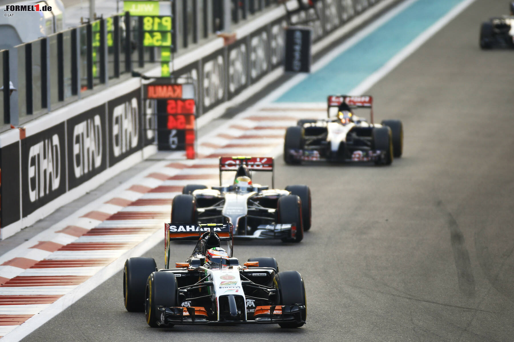 Teamkollege Perez konnte dank der doppelten Punkte noch an Kimi Räikkönen und Kevin Magnussen vorbeiziehen: "Die Zähler heute haben mir dabei geholfen, die Saison in den Top 10 zu beenden. Das ist ein tolles Ergebnis nach einem tollen Jahr", findet der Mexikaner. "Ich denke, ich hätte heute sogar noch weiter vorne landen können, aber wahrscheinlich kam unser letzter Boxenstopp zu spät. Hätten wir etwas früher auf Supersoft gewechselt, wären wir vielleicht noch an Jenson Button herangekommen. Jeder im Team hat einen Superjob dieses Jahr gemacht, und wir sollten glücklich sein mit dem, was wir erreicht haben."