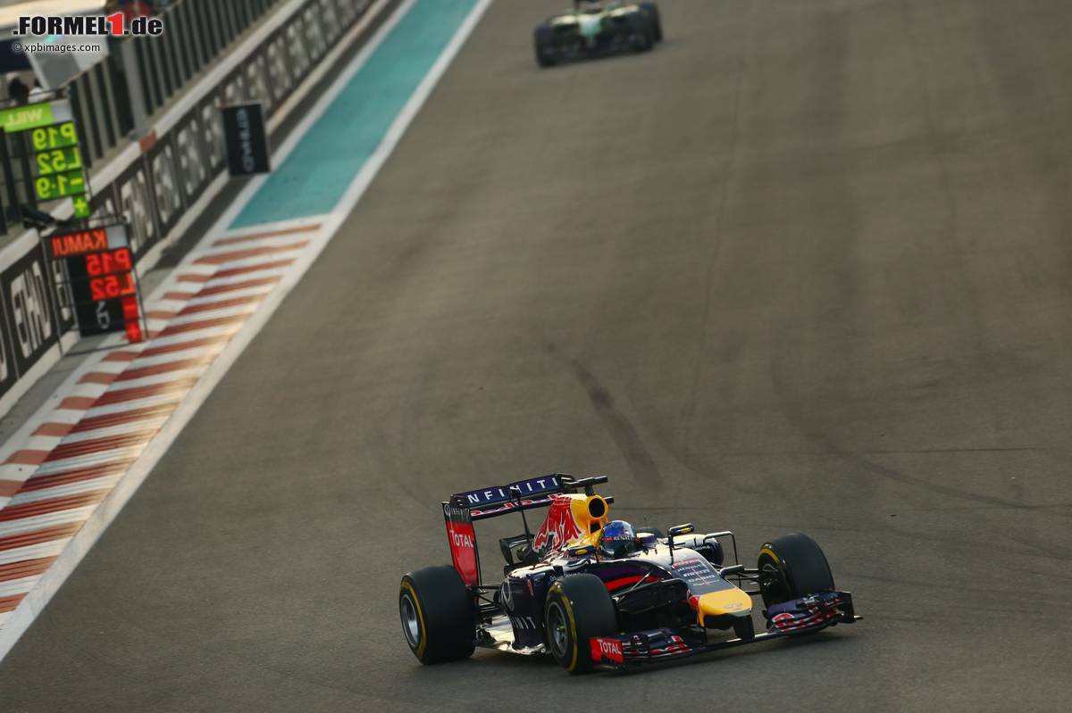 (Motorsport-Total.com) - Nach dem Erreichen des nicht zufriedenstellenden Startplatzes sechs, der darauf folgenden Disqualifikation und Rückversetzung ans Ende des Starterfeldes und einem Start aus der Boxengasse kommt Sebastian Vettel über einen achten Platz im finalen Rennen der Formel-1-Saison 2014 nicht hinaus. Unter dem Flutlicht von Abu Dhabi verabschiedet sich ein unzufriedener viermaliger Weltmeister von Red Bull. Im kommenden Jahr fährt Vettel für Ferrari.