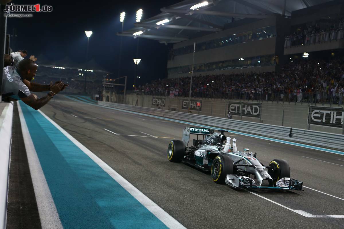 "Andererseits wollte ich mir nicht heute Abend den Kopf darüber zerbrechen, was ich hätte anders machen sollen", so der nun zweimalige Weltmeister. Rechtzeitig zum Rennen angekommen, verfolgten Vater Anthony, Stiefmutter Linda, Bruder Nicolas und Lebensgefährtin Nicole Scherzinger die Triumphfahrt Hamiltons auf dem Yas Marina Circuit und nahmen ihn anschließend in die Arme.