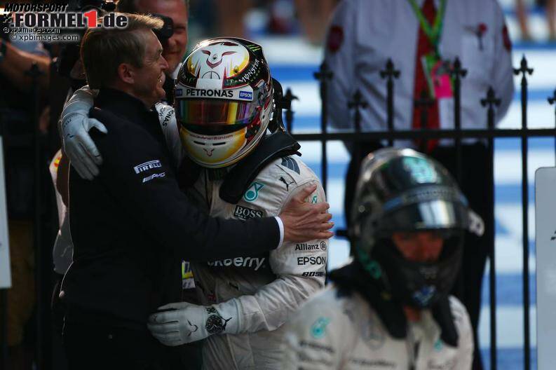 Sebastian Vettel hatte im Ferrari als Dritter nicht den Hauch einer Chance und verlor in 58 Runden mehr als eine halbe Minute auf die Mercedes-Silberpfeile. "35 Sekunden ist eine Ansage, aber so etwas kann auch schnell wieder weg sein", sagt Wolff. "Wir hatten ein völlig fehlerfreies Rennen. Da kommt so ein Abstand mal zustande." Und Hamilton will mehr. Er verspricht in Terminator-Manier: "I'll be back!"