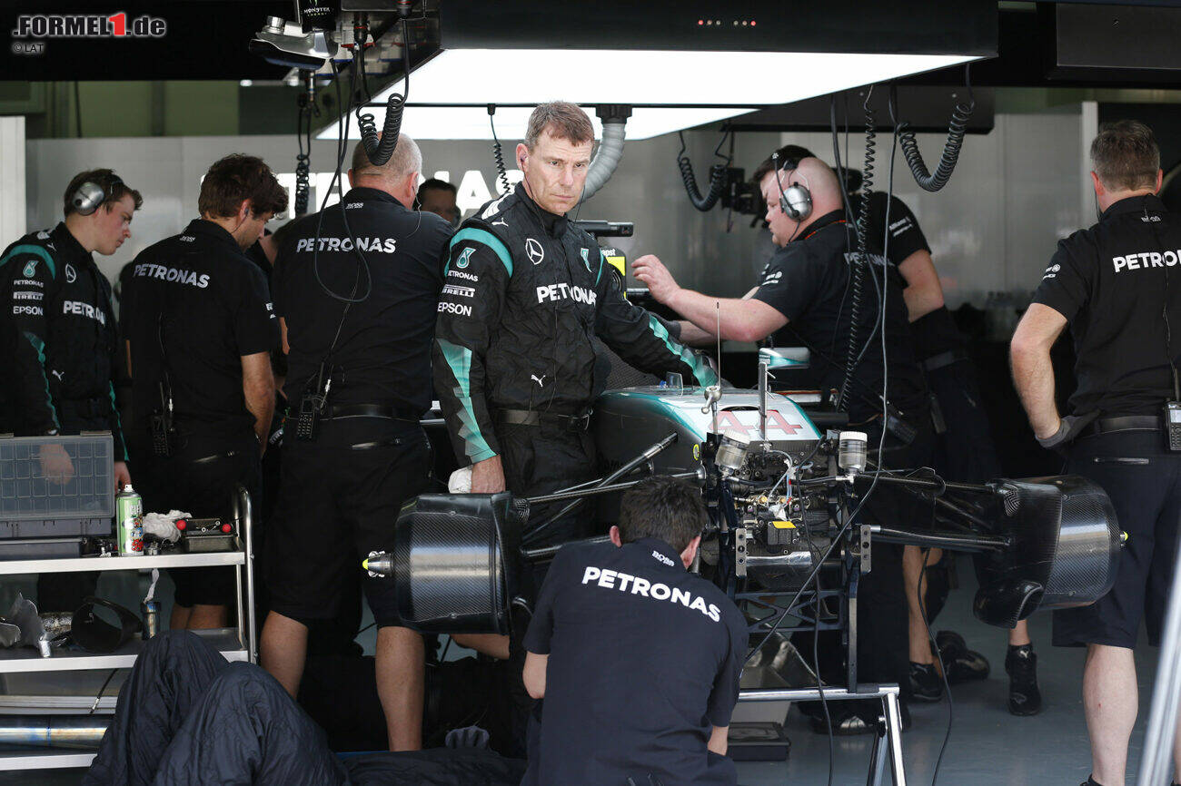 Das erste Freie Training war noch nicht einmal eine halbe Stunde alt, als es für Hamilton schon beendet war. Nachdem der Weltmeister ein verdächtiges Geräusch im Heck des W06 vernommen hatte, stellte er das Auto nach Rücksprache mit der Box sicherheitshalber in Kurve 9 ab. Nachdem das Fahrzeug an die Box zurückgebracht wurde, begaben sich die Mercedes-Mechaniker auf Fehlersuche.