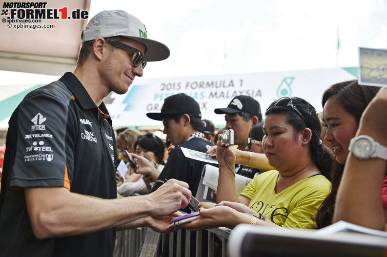 (Motorsport-Total.com) - Die beiden Force-India-Piloten starten beim Grand Prix von Malaysia in Sepang einträchtig aus der siebten Startreihe. Nico Hülkenberg fährt von Position 13 los, Sergio Perez direkt neben ihm von Platz 14. Im vom Regen beeinträchtigten zweiten Qualifying-Segment (Q2) hatte "Hulk" mehr Spaß als sein mexikanischer Teamkollege.