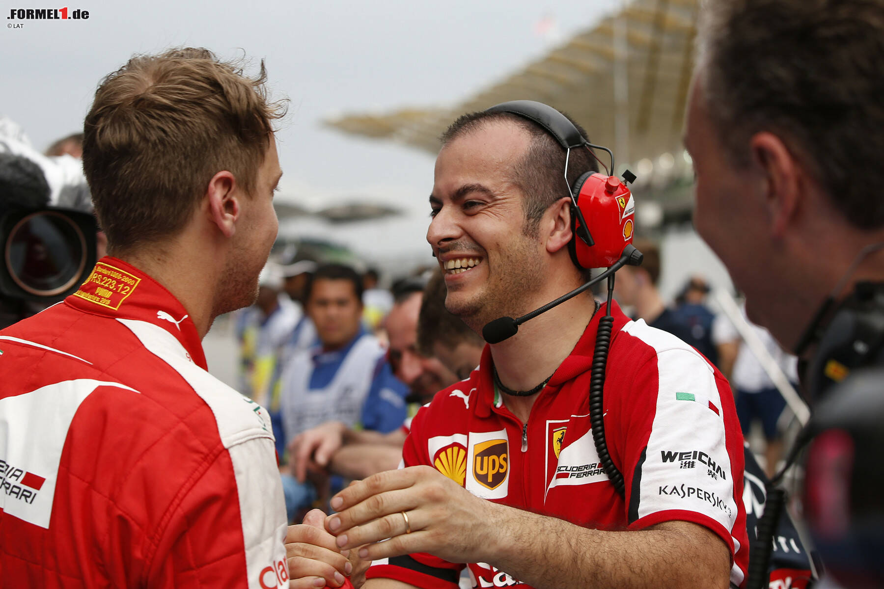 "Wir wussten, dass er bei diesen Bedingungen etwas Besonderes ist", grinst er und verweist auf dessen Regensieg in Monza 2008 im Toro Rosso. Und selbst Teamchef Maurizio Arrivabene klopft seinem Schützling bei 'RTL' verbal auf die Schulter: "Nicht mir, Sebastian und dem Team muss man gratulieren", sagt der Italiener. "Ich bin stolz auf den Job, den die Ingenieure gemacht haben. Sebastian war fantastisch."