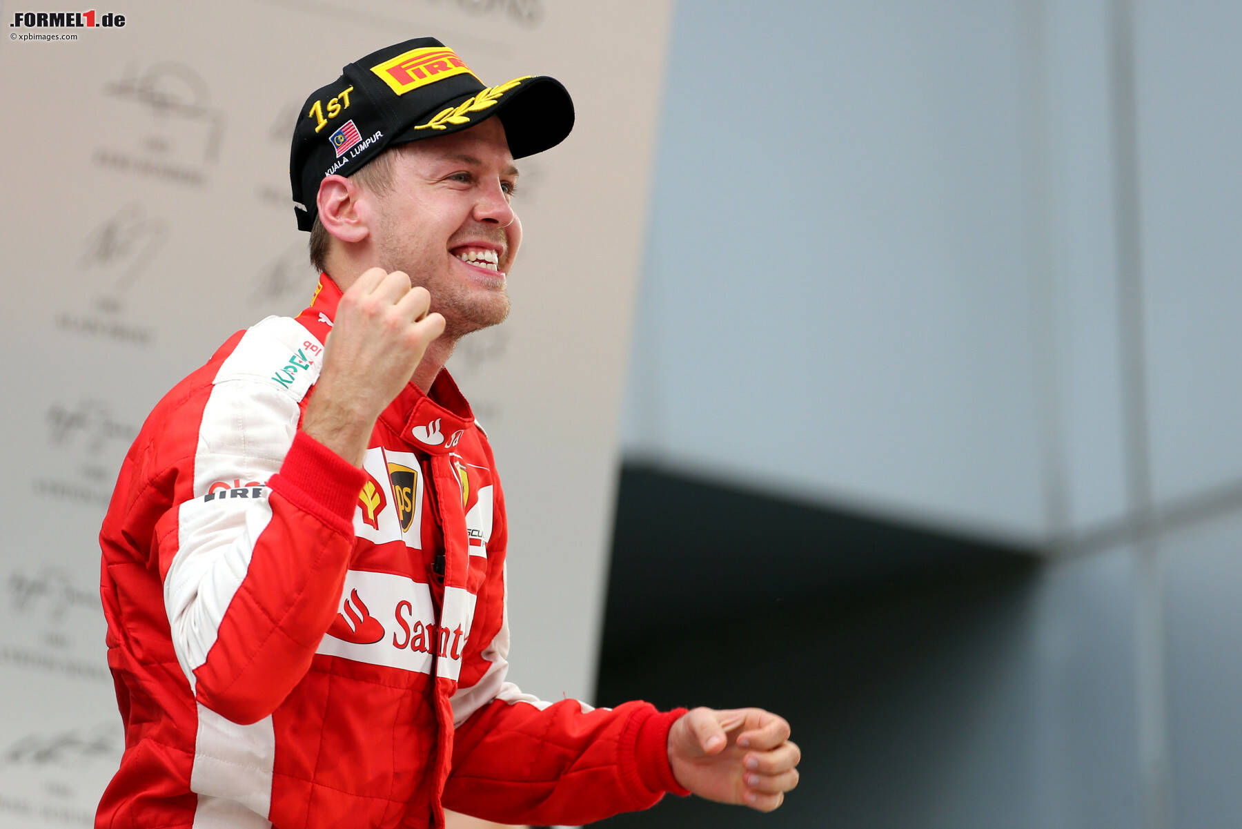 (Motorsport-Total.com) - Das rote Märchen ist perfekt: Mit dem ersten Sieg in Diensten Ferraris erlebte Sebastian Vettel beim Malaysia-Grand-Prix am Sonntag eine der Sternstunden seiner Karriere. Es flossen viele Tränen auf dem Podest. Der Heppenheimer hatte genauso feuchte Augen wie sein gerührter Teamchef Maurizio Arrivabene, der aus vollem Herzen die Nationalhymne Italiens sang - auch für ihn war es der erste Erfolg mit der Scuderia. "Da wird nicht nur ein Traum wahr, sondern mehrere Kindheitsträume", so Vettel.