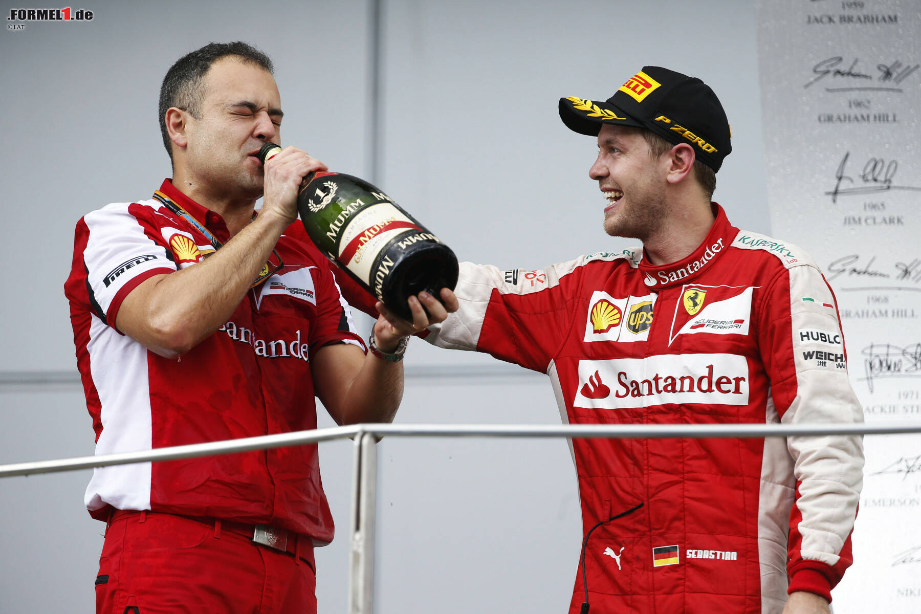 Dabei ist Tradition nicht immer ein Vorteil, wie Allison schildert: "Ich bin verdammt stolz auf das ganze Team. Jede Mannschaft arbeitet hart, aber Ferrari hat die Bürde der eigenen Geschichte auf den Schultern und das Gewicht der Erwartungen ganz Italiens." Maurizio Arrivabene, intern als Kumpeltyp und Vaterfigur bekannt, freut sich bei 'Sky Sports F1' besonders für seine Schützlinge. "Sie arbeiten Tag und Nacht. Als erstes dachte ich an sie." Er schickte lieber Chefmechaniker Diego Ioverno auf das Podium und verzichtete darauf, sich selbst mit Champagner duschen zu lassen.